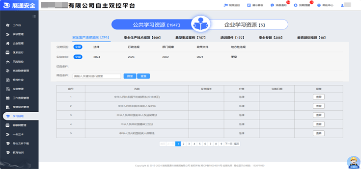 平臺配置法律法規(guī)、技術(shù)規(guī)范、典型事故案例、安全專題、培訓(xùn)課件等多個(gè)維度學(xué)習(xí)資料,并定期更新。企業(yè)可根據(jù)需要自主下載,也可上傳本單位學(xué)習(xí)資料,提高安全管理專業(yè)知識與技能水平。