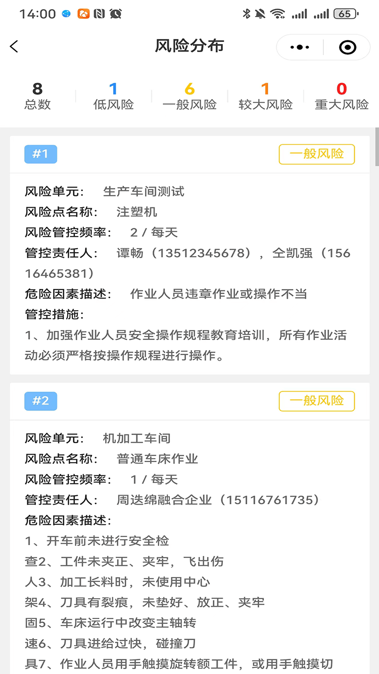 風(fēng)險(xiǎn)分級管控,對應(yīng)管控層級、管控頻次、管控責(zé)任人、管控措施等一目了然,責(zé)任落實(shí)到人。